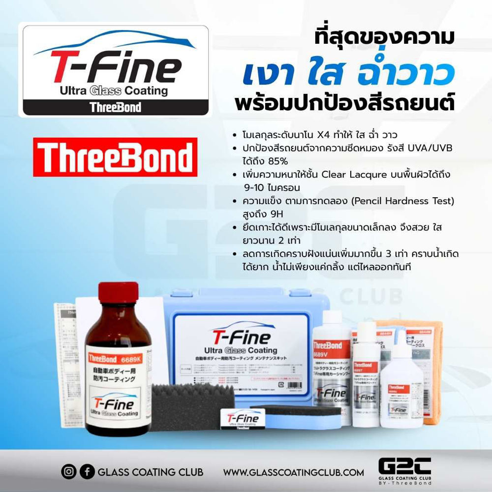 เรียกได้ว่า G2C by ThreeBond เป็นศูนย์เคลือบแก้วเพียงแห่งเดียวใน ประเทศไทยที่เป็นผู้ค้นคว้า วิจัย ผลิต และนำเข้าผลิตภัณฑ์และน้ำยาเคลือบสี รถยนต์กึ่งถาวร (เคลือบแก้ว) จากโรงงานในประเทศญี่ปุ่น ส่งตรงถึงรถยนต์ ทุกคัน และยังให้บริการดูแลรถแบบครบวงจร ในการปกป้อง ฟื้นฟูสภาพ บำรุง รักษาผิว สี และส่วนต่างๆ ของรถยนต์ด้วย